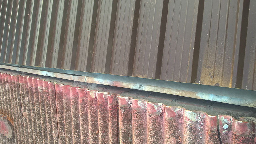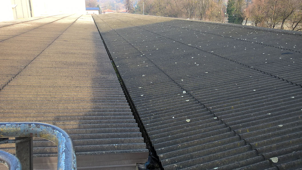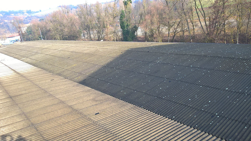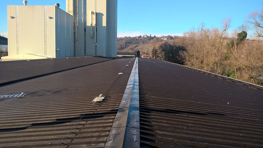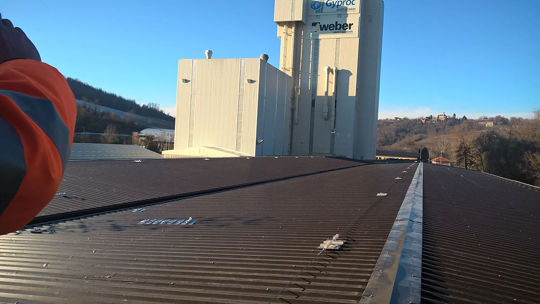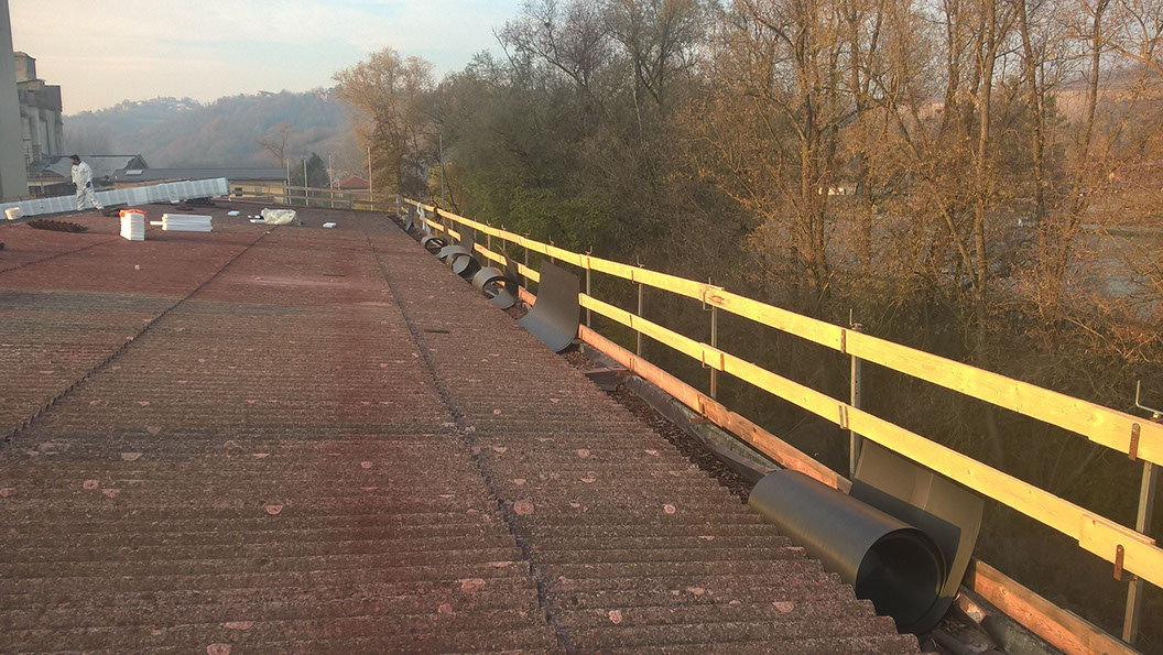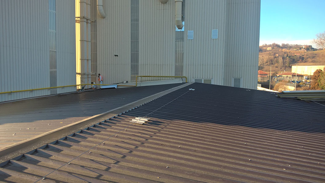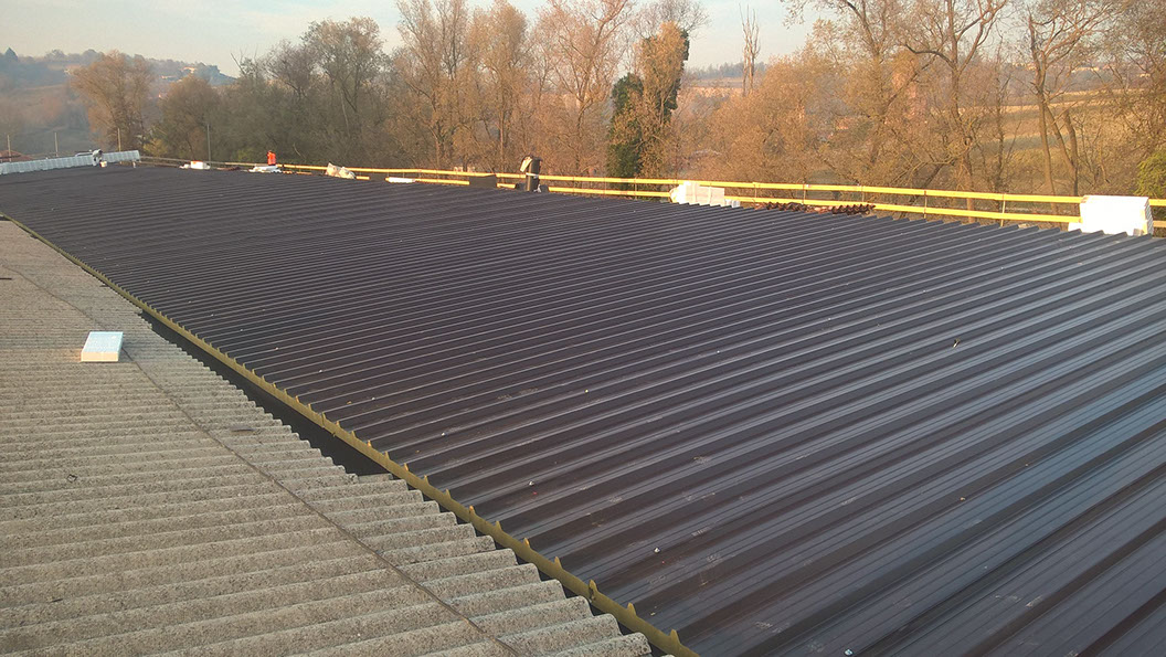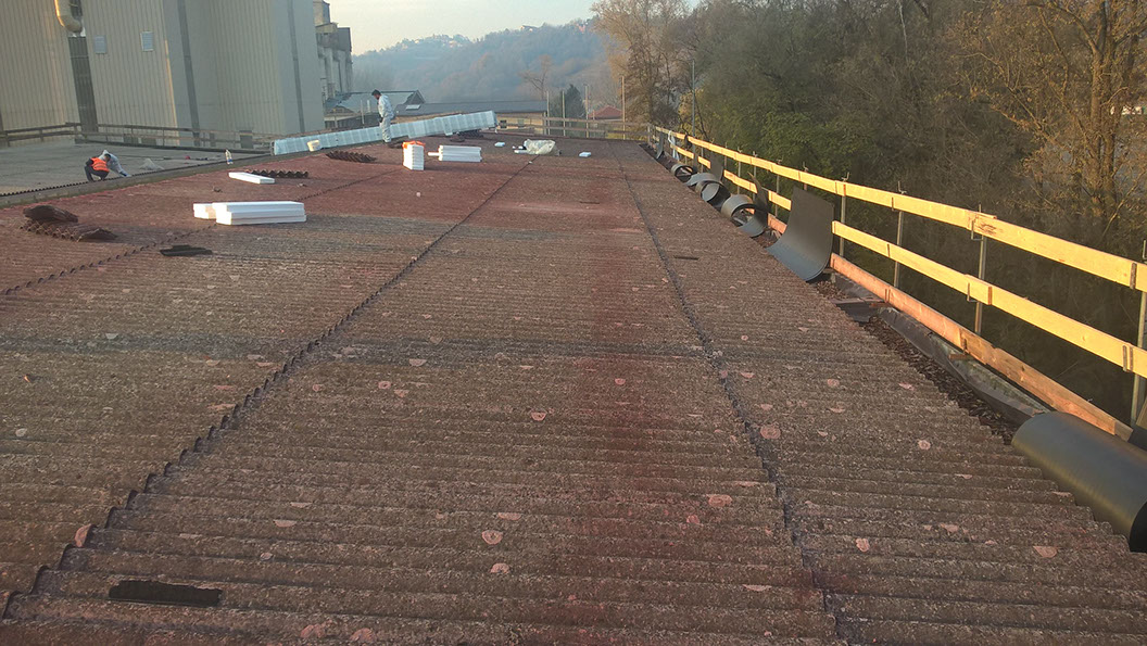 Rimozione lastre in amianto in copertura di capannone industriale e posa di lastre in lamiera Stabilimenti SAINT-GOBAIN