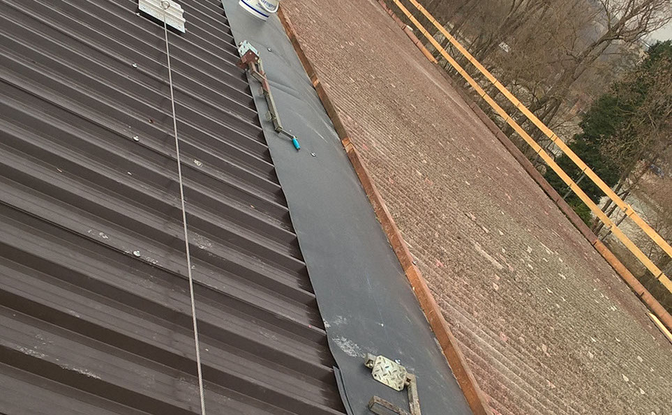 Rimozione lastre in amianto in copertura di capannone industriale e posa di lastre in lamiera Stabilimenti SAINT-GOBAIN
