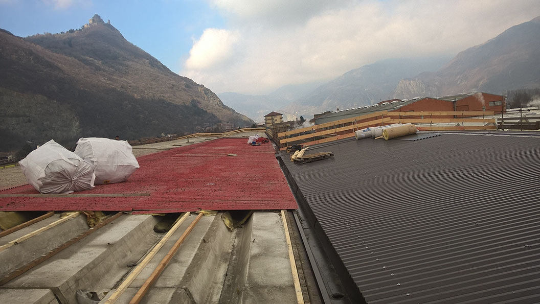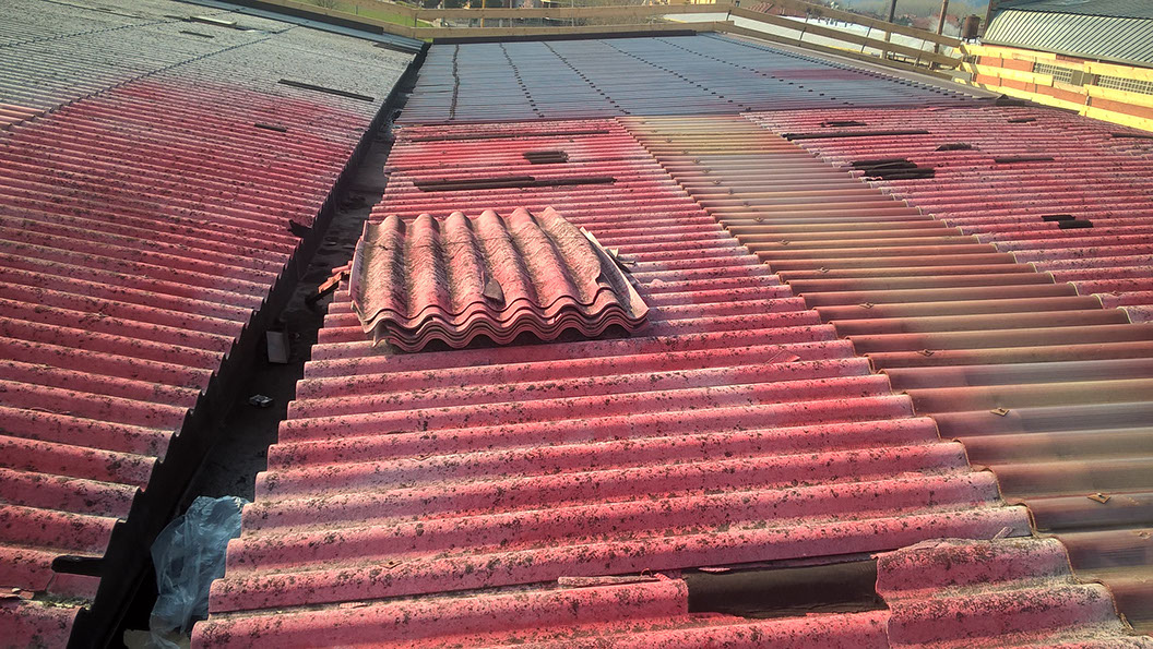 Rimozione lastre in amianto in copertura di capannone industriale e posa di lastre in lamiera