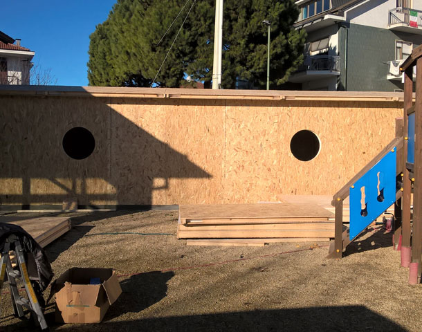 Restauro di tutte le facciate dell'edificio ottocentesco e realizzazione di galleria pedonale di collegamento.