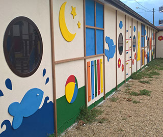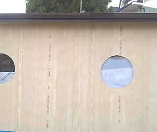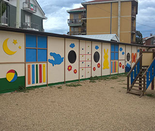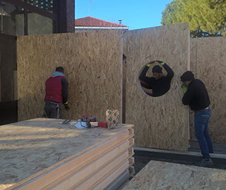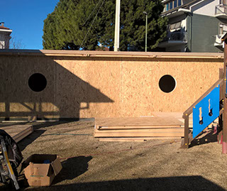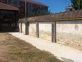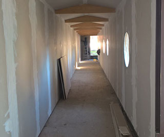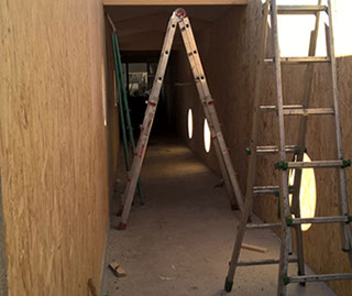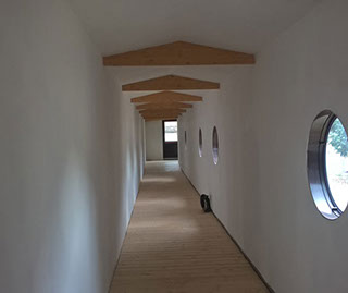 Realizzazione di galleria pedonale con pareti portanti e copertura in legno.