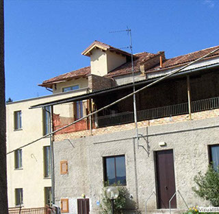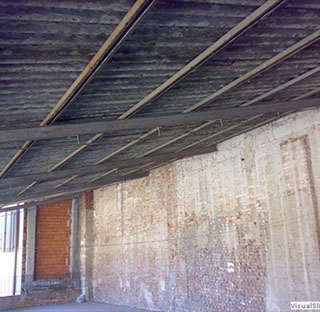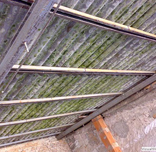 Rimozione della struttura di copertura del terrazzo in acciaio e lastre di amianto, sostituzione con tegole e legno - mq 180
