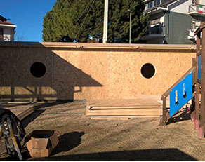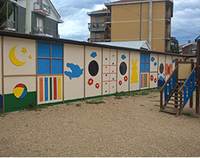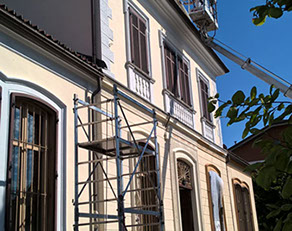 Restauro di tutte le facciate dell'edificio ottocentesco e realizzazione di galleria pedonale di collegamento.