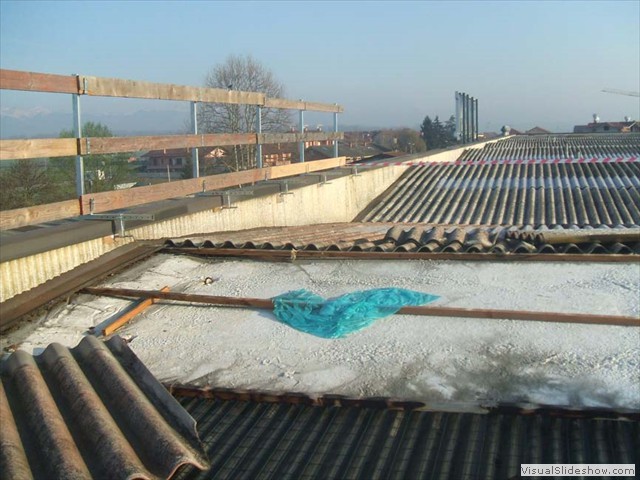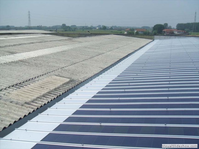 Rimozione lastre in amianto in copertura di capannone e posa di lastre in lamiera e pannelli fotovoltaici
